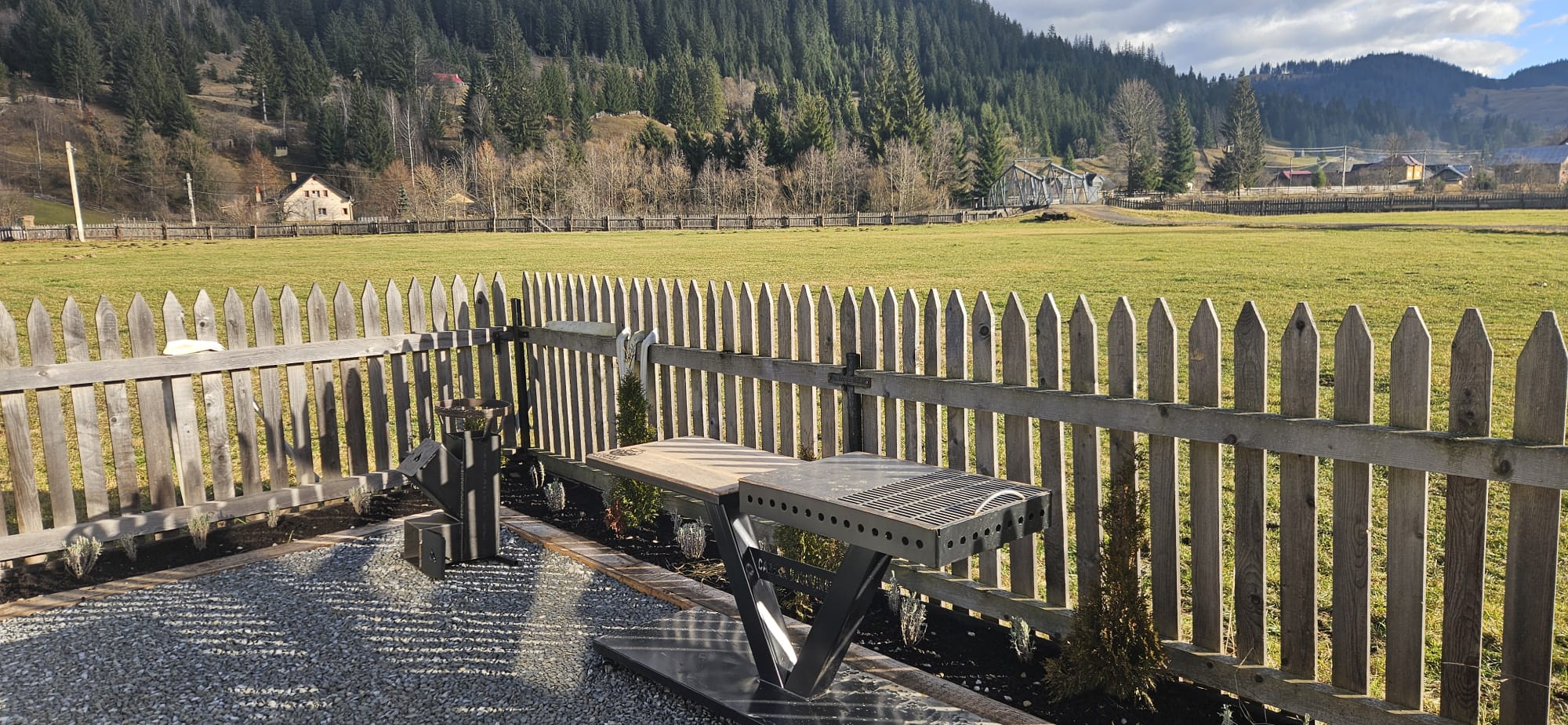 Cabana are foișor, grătar, saună și ciubăr, care te cucerește pe loc prin design și peisaj.